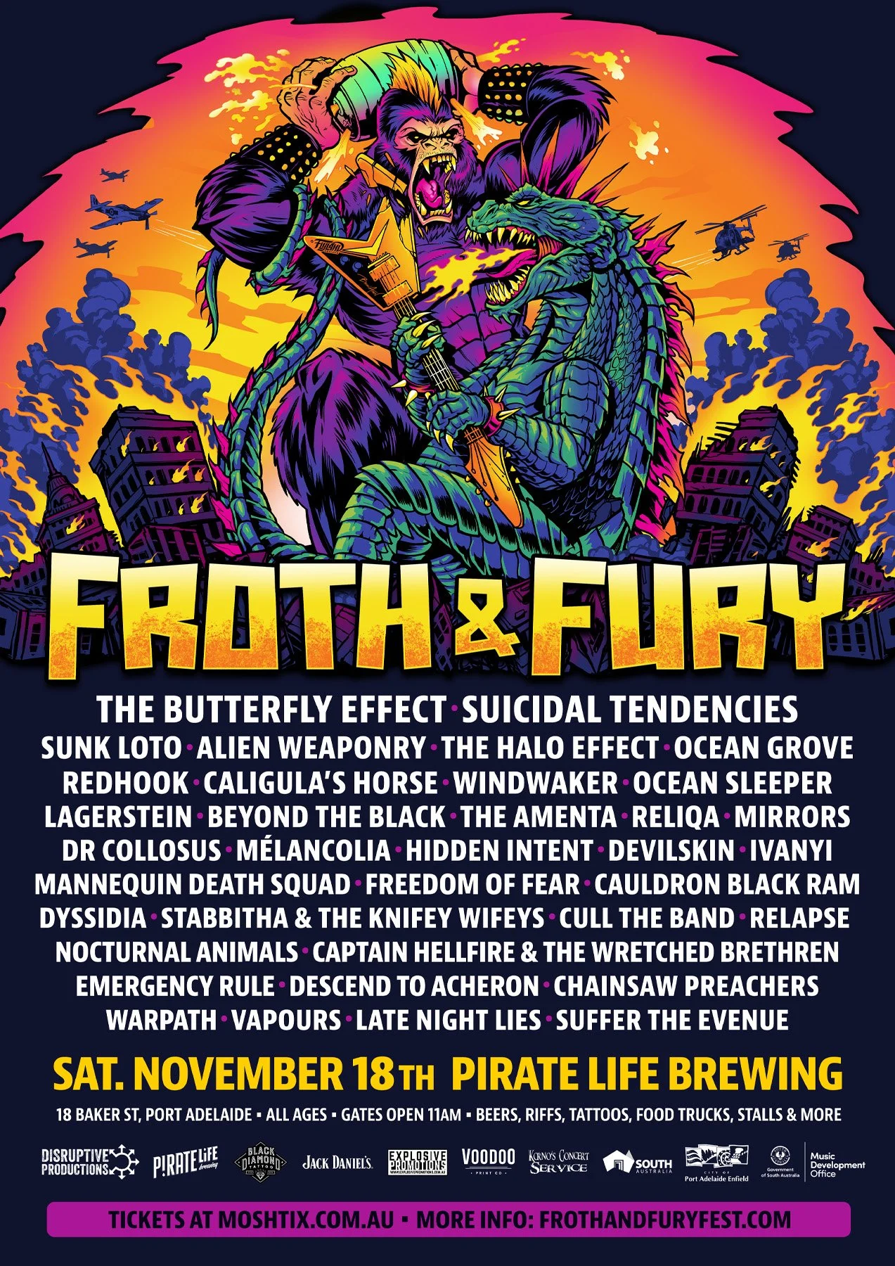 One of Australia’s biggest alternative music festivals is coming up next month, and lucky for us South Australians, it’s in Port Adelaide at the Pirate Life Brewery and surrounding streets! I’m somehow playing with 3 different bands which is going to be somewhat punishing, but also a lot of fun! The legendary Suicidal Tendencies from the US are headlining amongst some pretty big name Aussie acts.
